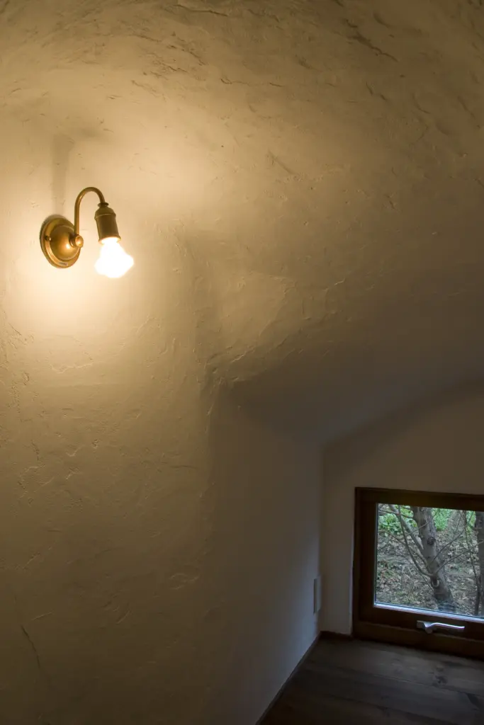 外観と同じフランス産の本漆喰を日本の風土に合わせたものに改良しました。きめ細かな漆喰は、従来の塗り壁やクロスでは表現しきれない、濃淡のある独特な風合いです。通常の2倍ほどの厚みに塗ることで、素材のぬくもりと重厚感が際立ち、室内を表情豊かに彩ります。