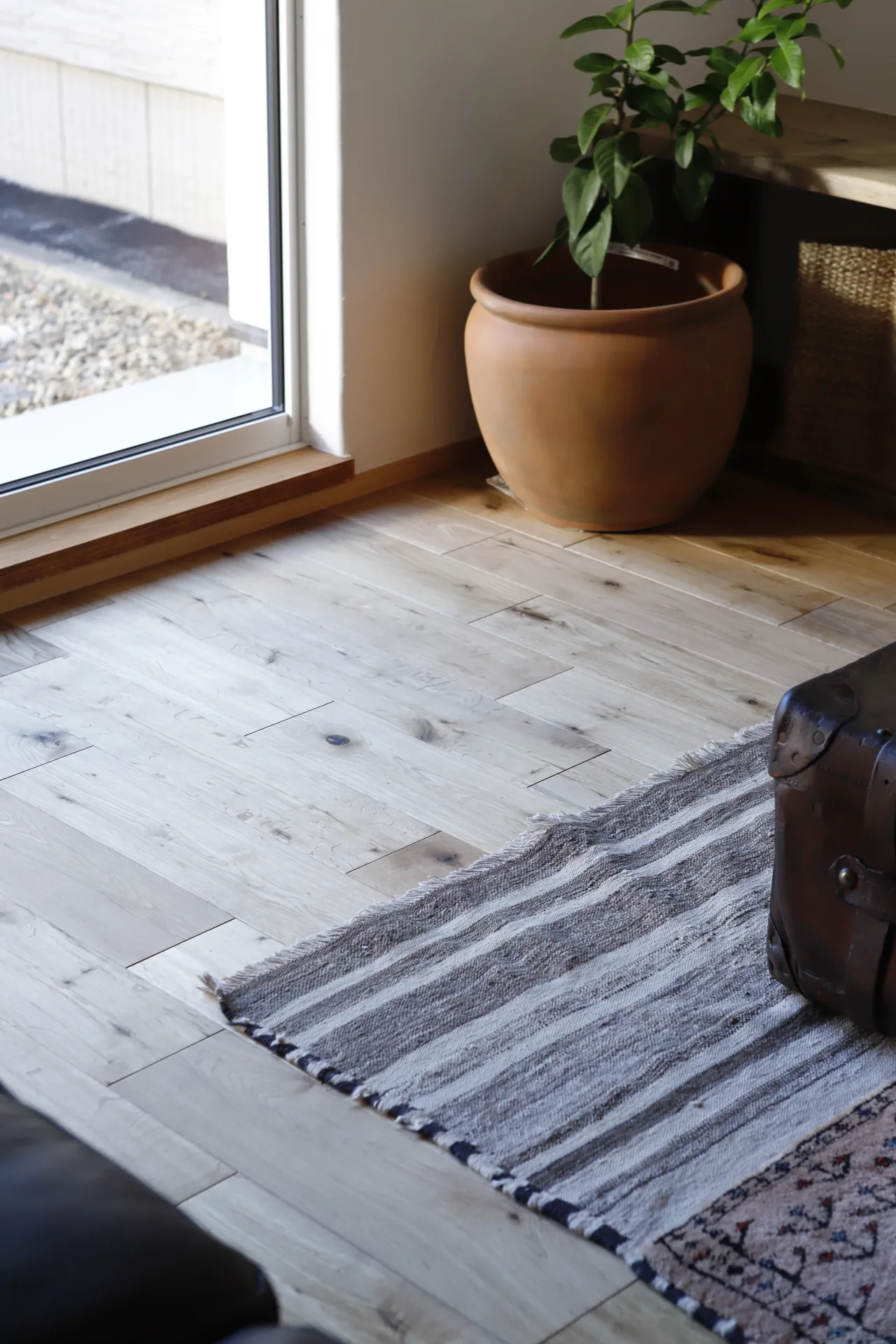 Ivoireとはフランス語で「象牙色」。白でも黄色でもない、その中間に存在する温かみのある色——ANTiQのIvoireシリーズは、漆喰と光の関係を丁寧に設計します。年を追うごとに変わる壁の表情が、その家固有の物語を語ります。